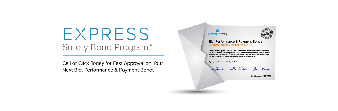 The Express Surety Bond Program™ has been established for contractors that need a bond fast. At Direct Surety, we’re dedicated to your success and determined to meet all your contract surety bond needs!